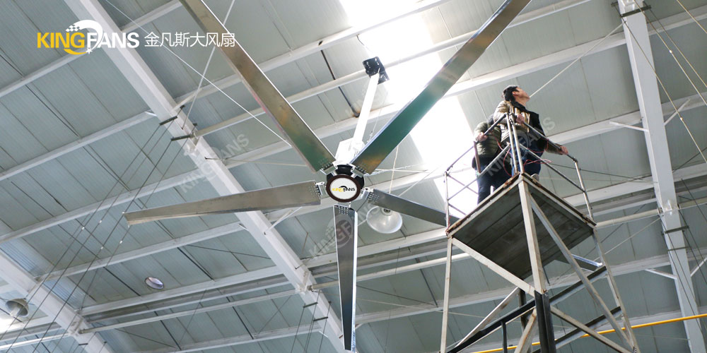 金凡斯大風(fēng)扇安裝人員在保養(yǎng)現(xiàn)場