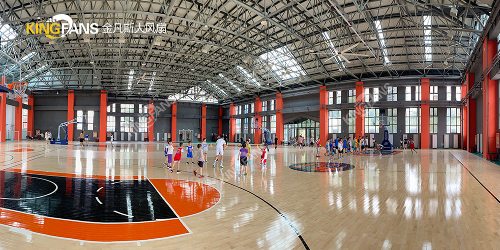 Kingfans籃球館大風(fēng)扇,適用于4米以上的高大、開闊空間。7.3米大直徑扇葉,低轉(zhuǎn)速高風(fēng)量,強力攪動氣流,快速幫助室內(nèi)空間除濕。地面清潔工作結(jié)束后,籃球館大風(fēng)扇還可以快速吹干地面。及時避免籃球館地板受潮鼓包的情況。