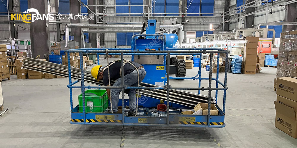 所有安裝皆符合標準后,用手或杠桿撥動扇葉檢查是否有過緊或擦碰現象,有無妨礙轉動的物品,用力搖動車間大型吊扇檢查是否穩固,方可進行接電拉線工作。