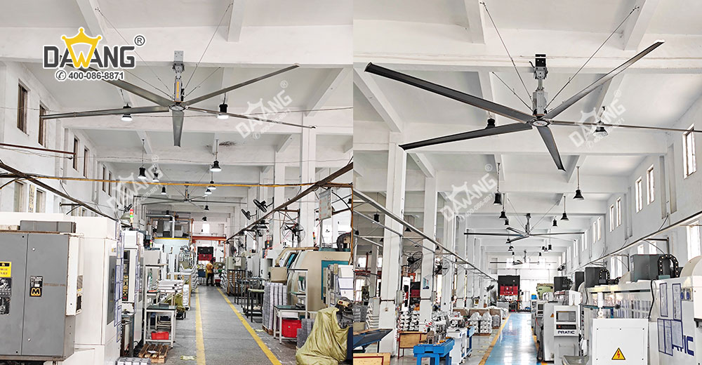 鋁廠作業車間設備密集、材料堆積多,散熱難、通風差。夏季高溫時,車間內設備釋放的熱量讓作業環境更加炎熱難耐。原本安裝的小型壁扇,風量小,通風降溫效果在偌大的車間里效果不明顯。車間空間大,空調安裝、設計復雜,耗能也高,長期使用也是一筆不小的開支。
