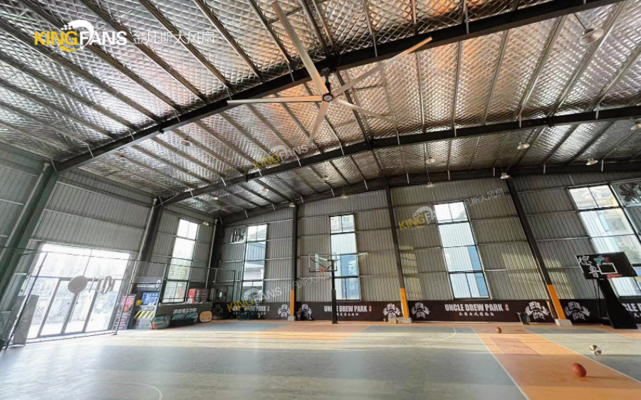 菏澤室內籃球館面積3000多平,整個籃球館采用鋼結構搭建。夏季炎熱,常見的空調耗電高、安裝設計復雜,場地面積大,降溫散熱的成本大大增加。